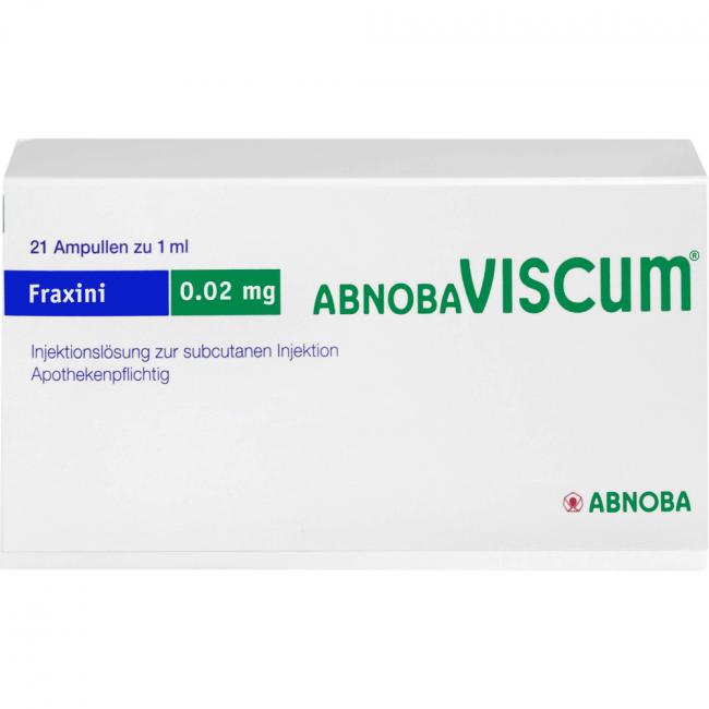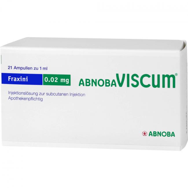 ABNOBAVISCUM Fraxini 0,02 mg Ampullen. Anwendungsgebiete: Anwendungsgebiete: Registriertes homöopathisches Arzneimittel, daher ohne Angabe einer therapeutischen Indikation.