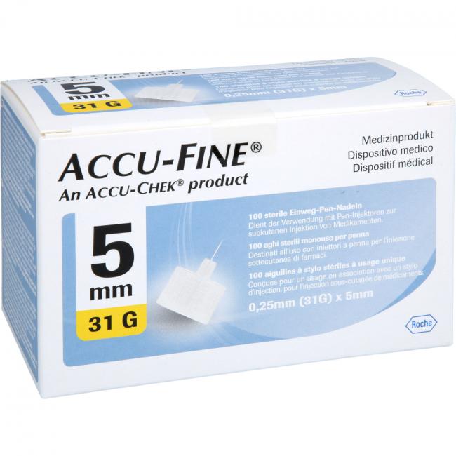 Produktinformationen ACCU FINE sterile Nadeln f.Insulinpens 5 mm 31 G, 100 Stück