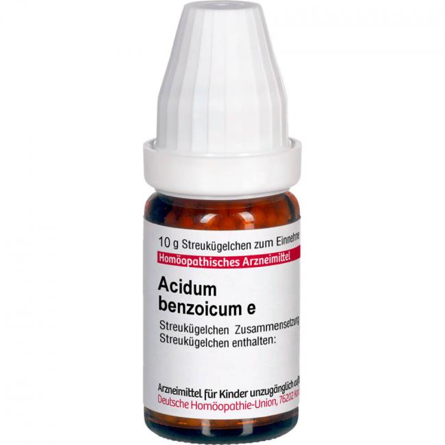 Acidum benzoicum e resina D 20. Anwendungsgebiete: Registriertes homöopathisches Arzneimittel, daher ohne Angabe einer therapeutischen Indikation. Warnhinweis: Dieses Arzneimittel enthält Sucrose (Saccharose / Zucker).