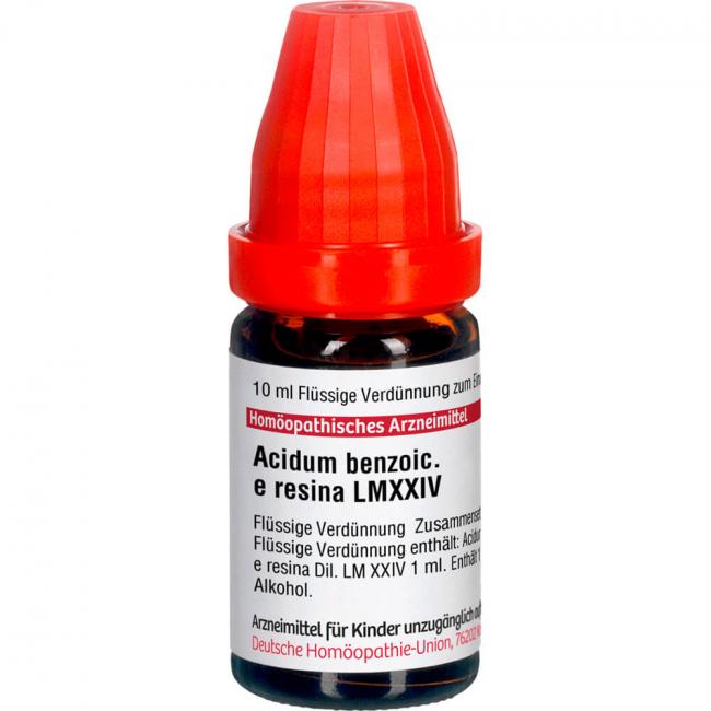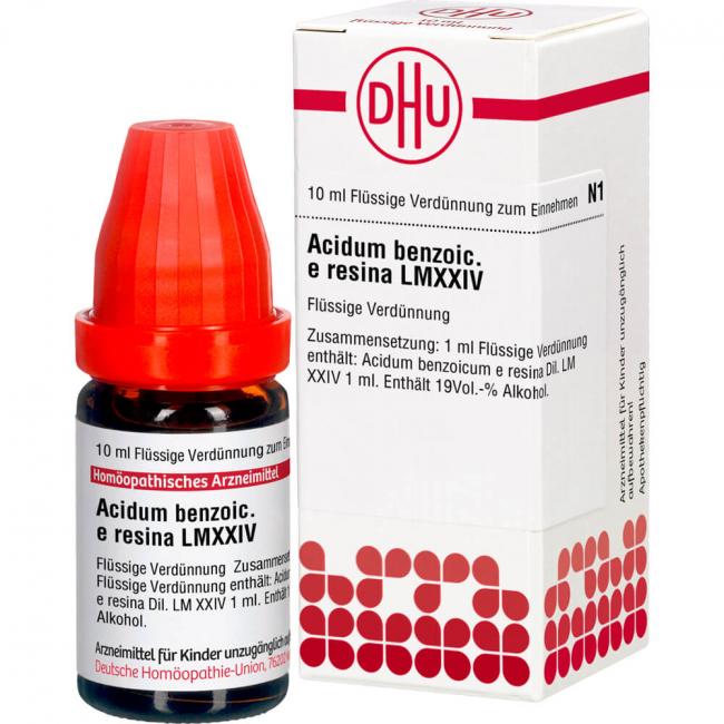 LM Acidum Benzoicum E Resina XXIV. Anwendungsgebiete: Registriertes homöopathisches Arzneimittel, daher ohne Angabe einer therapeutischen Indikation. Warnhinweis: Enthält 19 Vol.% Alkohol.