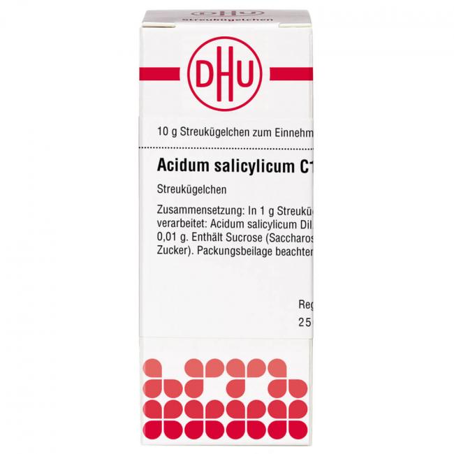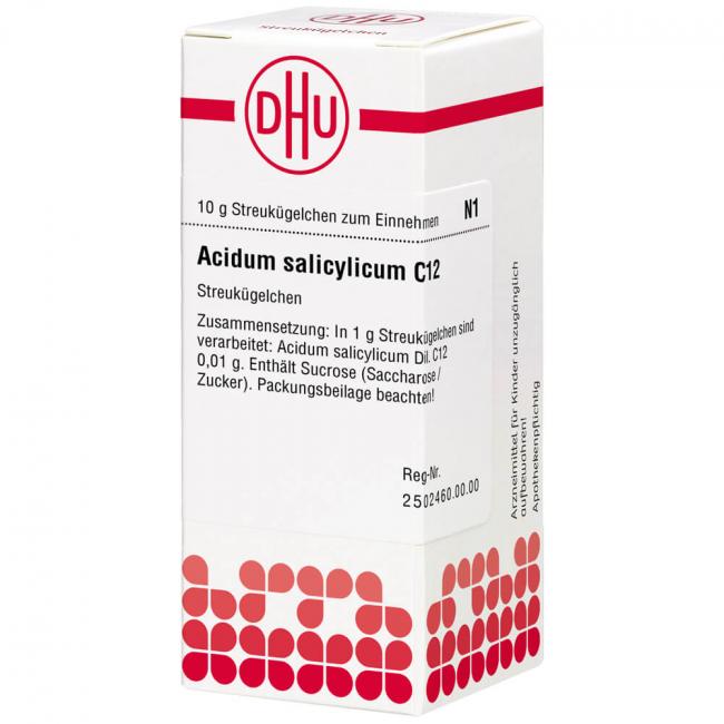 Acidum salicylicum C 12. Anwendungsgebiete: Registriertes homöopathisches Arzneimittel, daher ohne Angabe einer therapeutischen Indikation. Warnhinweis: Dieses Arzneimittel enthält Sucrose (Saccharose / Zucker).