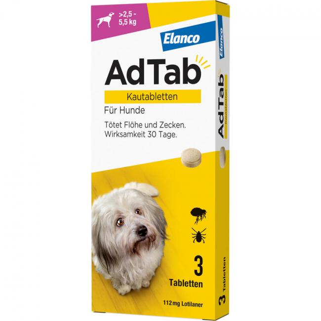 Pflichtangaben ADTAB 112 mg Kautabletten für Hunde >2,5–5,5 kg, 3 Stück