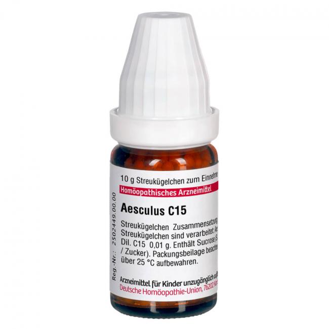 Aesculus C 15. Anwendungsgebiete: Registriertes homöopathisches Arzneimittel, daher ohne Angabe einer therapeutischen Indikation. Warnhinweis: Dieses Arzneimittel enthält Sucrose (Saccharose / Zucker).