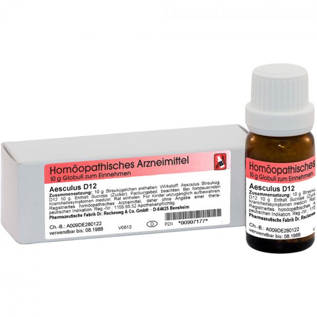 - In 10 g Globuli sind verarbeitet: Wirkstoff: Aesculus Dil. D12 0,1 g.