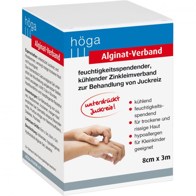 Pflichtangaben ALGINAT-Verband 8 cmx3 m kühlender Zinkleimverband, 1 Stück