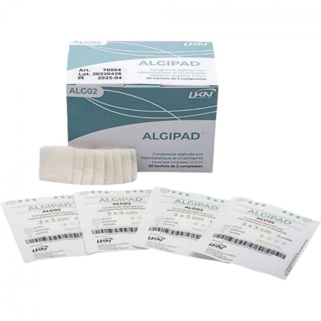 Pflichtangaben ALGIPAD blutstillende Alginat-Kompresse 3x3cm ste., 50x2 Stück