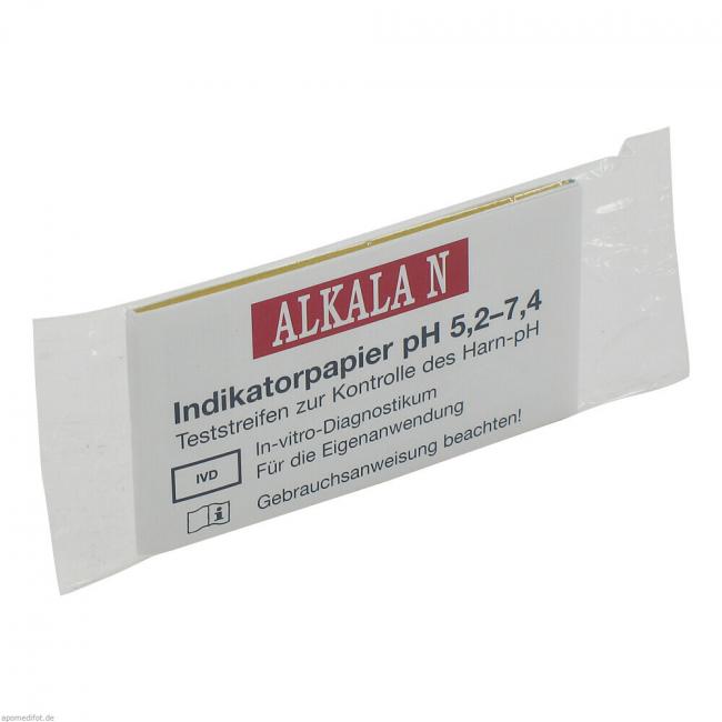Alkala N Indikatorpapier pH 5,2 - 7,4. Anwendungsgebiete: Teststreifen zur Kontrolle des Harn-pH.