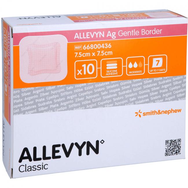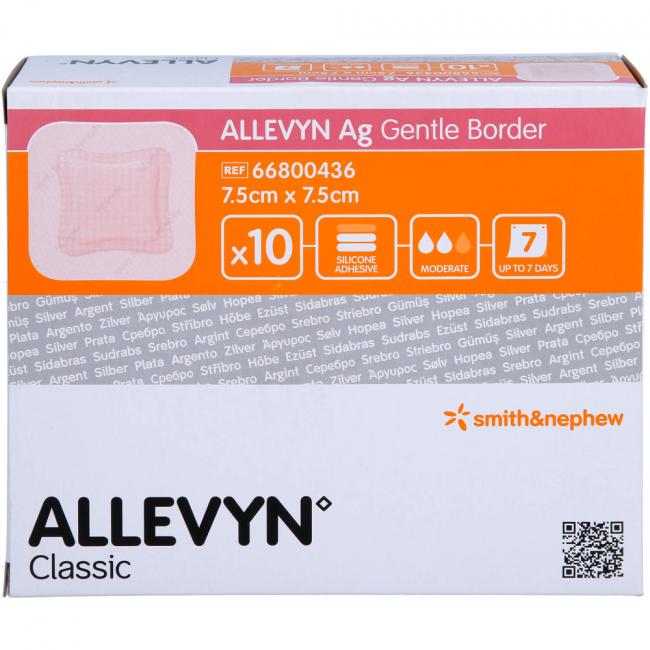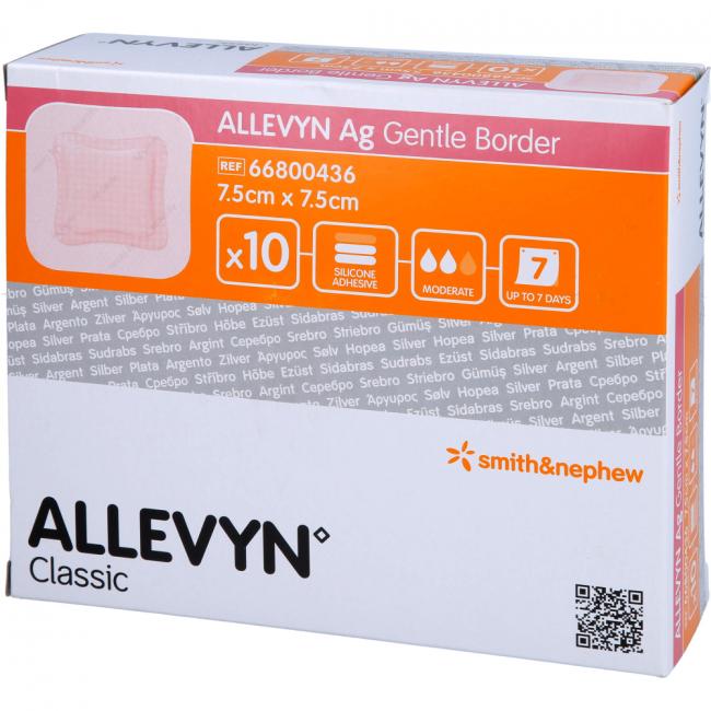 Pflichtangaben ALLEVYN Ag Gentle Border 7,5x7,5 cm Wundverband, 10 Stück