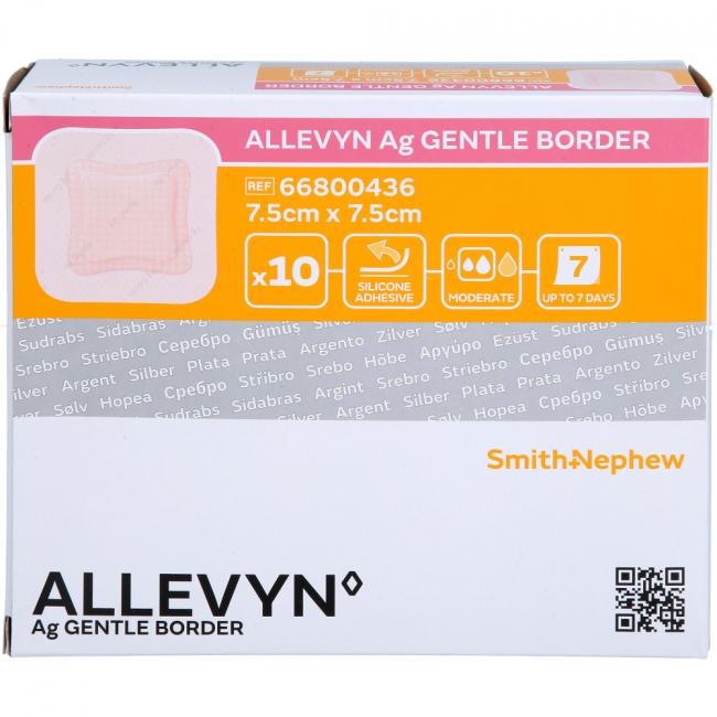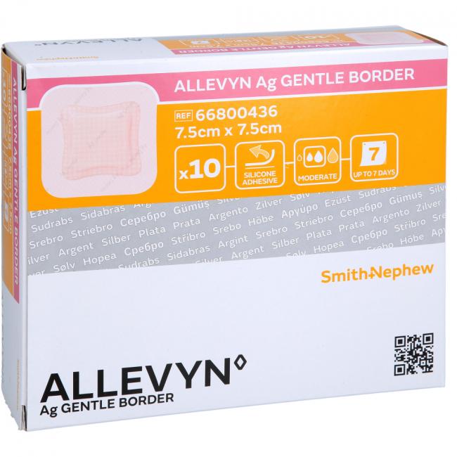 Pflichtangaben ALLEVYN Ag Gentle Border 7,5x7,5 cm Wundverband, 10 Stück