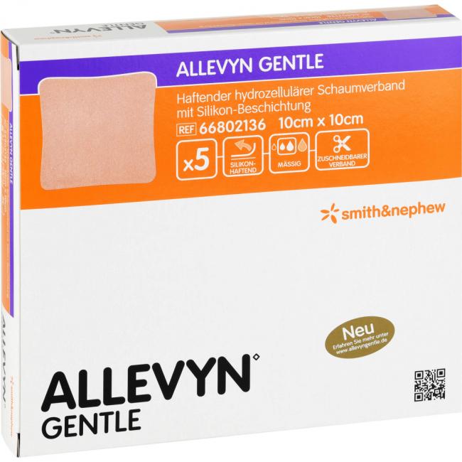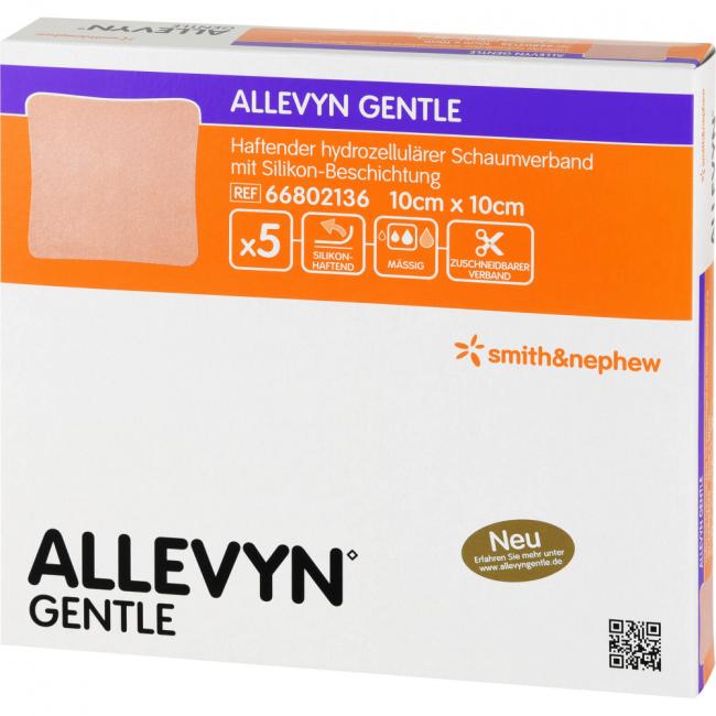 Pflichtangaben ALLEVYN Gentle 10x10 cm Schaumverband, 5 Stück