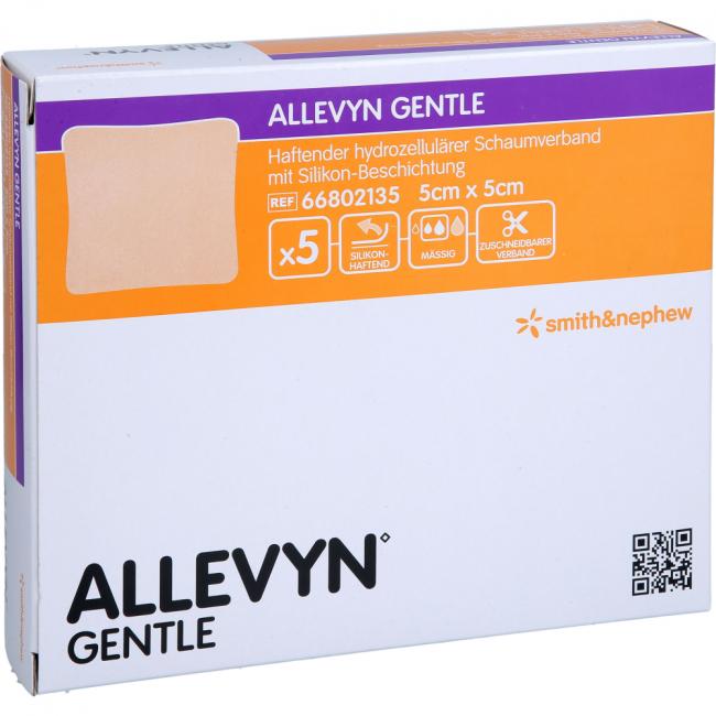 Pflichtangaben ALLEVYN Gentle 5x5 cm Schaumverband, 5 Stück