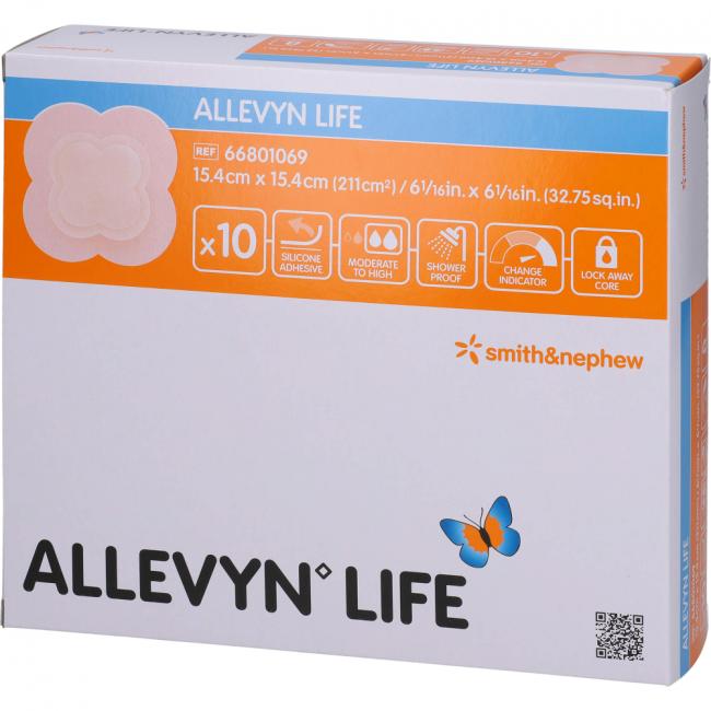 Produktinformationen ALLEVYN Life 15,4x15,4 cm Silikonschaumverband, 10 Stück