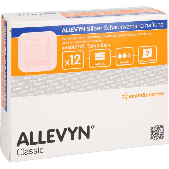 Pflichtangaben ALLEVYN Silber Schaumverb.7x8 cm haftend, 12 Stück
