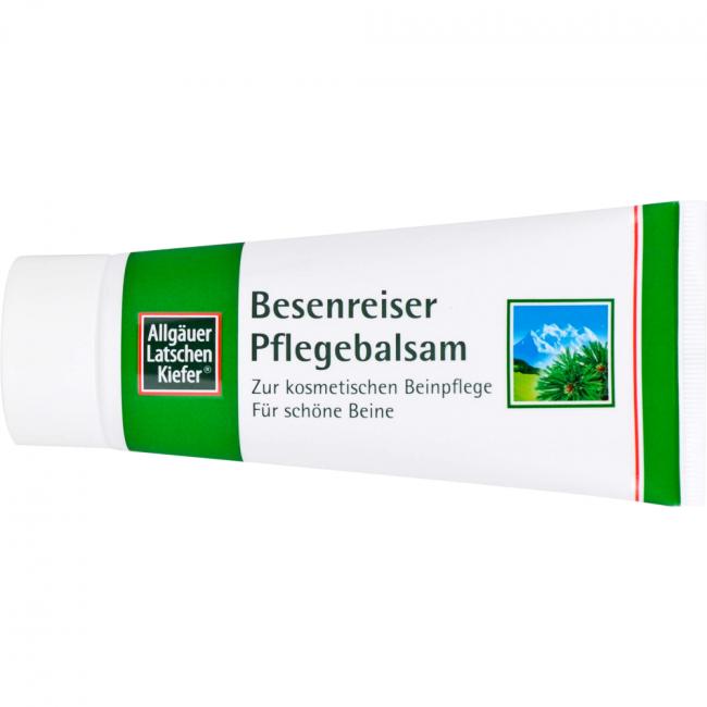 Allgäuer Latschenkiefer Besenreiser Pflegebalsam enthält sorgfältig abgestimmte Komponenten, die dazu beitragen die Sichtbarkeit von Besenreisern kosmetisch zu mindern. Das Einreiben mit dem Besenreiser Pflegebalsam pflegt wohltuend die Beine und sorgt für eine angenehme und erfrischende Kühlung.