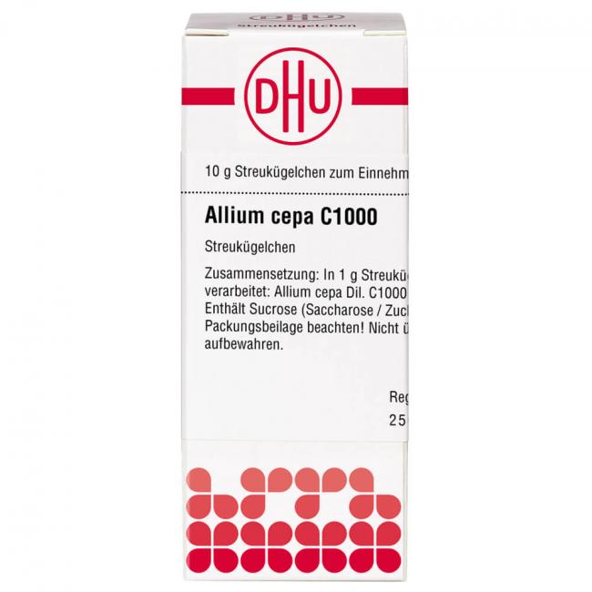 Allium cepa C 1000. Anwendungsgebiete: Registriertes homöopathisches Arzneimittel, daher ohne Angabe einer therapeutischen Indikation. Warnhinweis: Dieses Arzneimittel enthält Sucrose (Saccharose / Zucker).