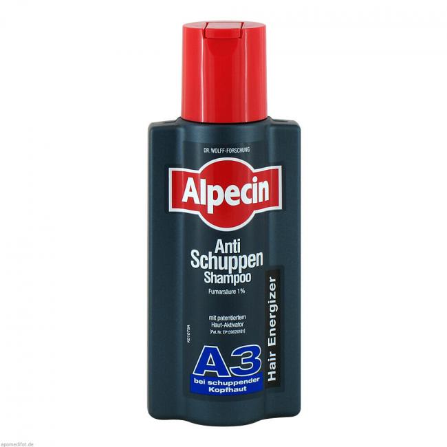 Was hilft gegen Schuppen? Die regelmäßige Anwendung von Alpecin Anti-Schuppen Shampoo A3, das Kopfhaut und Haar zuverlässig von Schuppen befreit und die Schuppen-Neubildung verhindert. Der Anti-Schuppen-Complex aus Piroctone Olamine und Fumarsäure wirkt nachhaltig - auch gegen hartnäckige Kopfschuppen. Der im Anti-Schuppen Shampoo enthaltene Haut-Aktivator hilft der Kopfhaut, ihre Barrierefunktion aufrechtzuerhalten und zu stabilisieren. Er schützt die Haarwurzel und sorgt für kräftiges Haar.