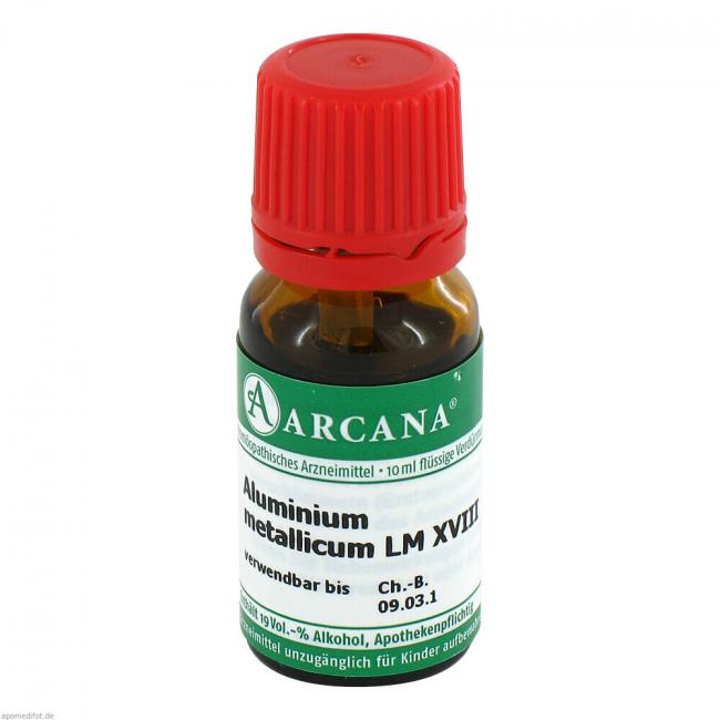 Aluminium metallicum LM XVIII . Anwendungsgebiete: Registriertes homöopathisches Arzneimittel, daher ohne Angabe einer therapeutischen Indikation. Warnhinweis: Enthält 19 Vol.-% Alkohol.