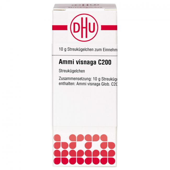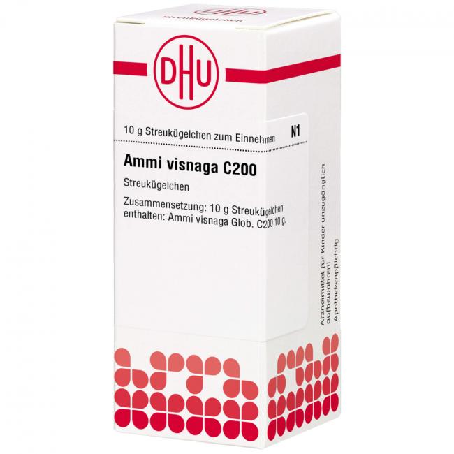 Ammi visnaga C 200. Anwendungsgebiete: Registriertes homöopathisches Arzneimittel, daher ohne Angabe einer therapeutischen Indikation. Warnhinweis: Dieses Arzneimittel enthält Sucrose (Saccharose / Zucker).
