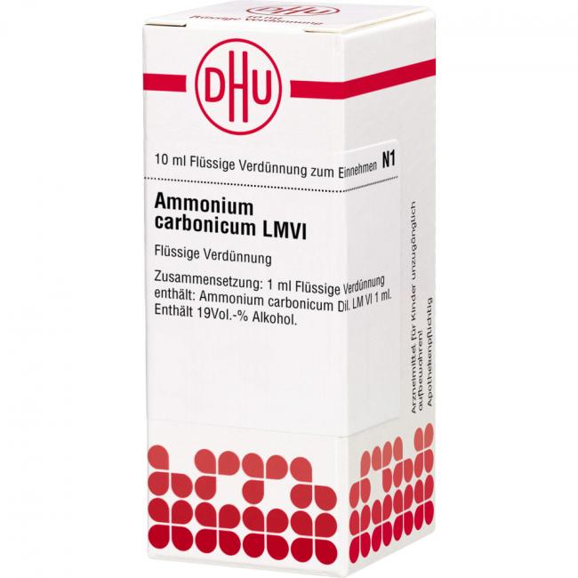 LM Ammonium Carbonicum VI. Anwendungsgebiete: Registriertes homöopathisches Arzneimittel, daher ohne Angabe einer therapeutischen Indikation. Warnhinweis: Enthält 19 Vol.% Alkohol.