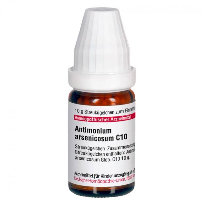 Antimonium arsenicosum C 10 ist ein homöopathisches Arzneimittel. Registriertes homöopathisches Arzneimittel, daher ohne Angabe einer therapeutischen Indikation.