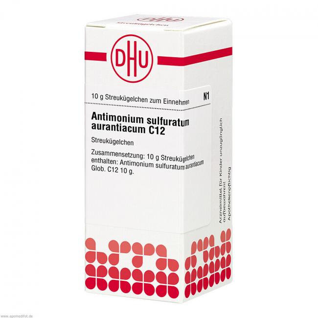 Pflichtangaben ANTIMONIUM SULFURATUM aurantiacum C 12 Globuli, 10 Gramm