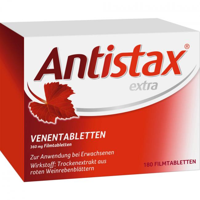Antistax extra Venentabletten sind ein pflanzliches Arzneimittel bei Venenerkrankungen. Antistax extra Venentabletten werden bei Erwachsenen angewendet zur Behandlung von Beschwerden bei Erkrankungen der Beinvenen (chronische Veneninsuffizienz), die sich zum Beispiel durch Schmerzen und Schweregefühl in den Beinen, Krampfadern, nächtliche Wadenkrämpfe, Juckreiz und geschwollene Beine (Beinödeme) äußern.