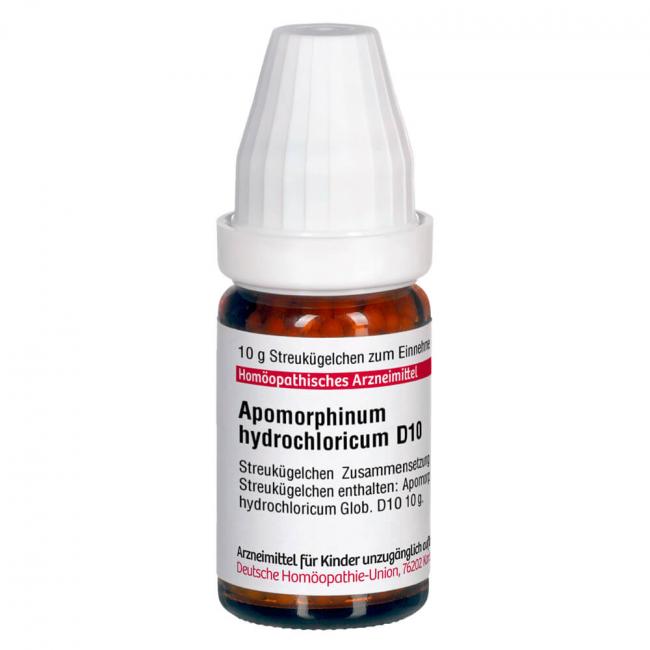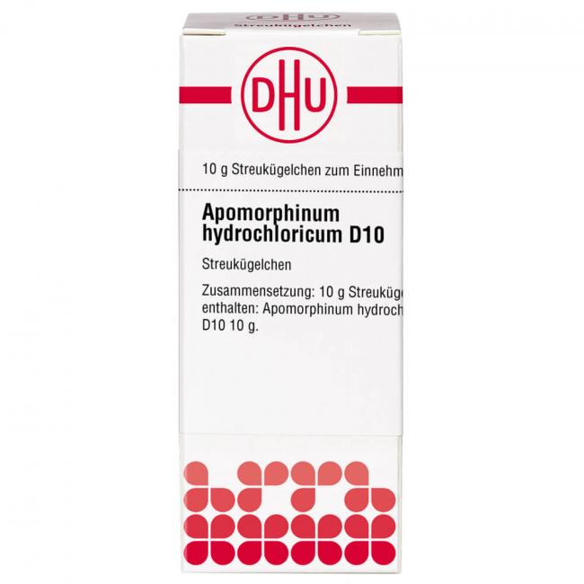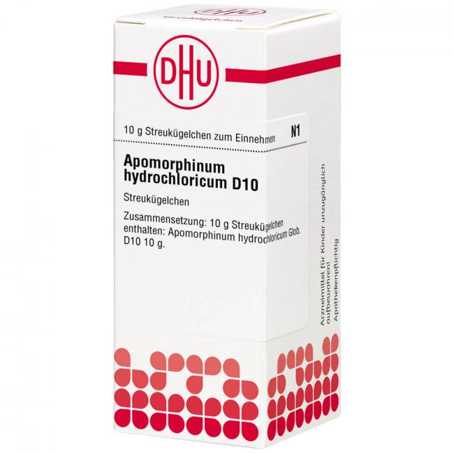 Apomorphinum hydrochloricum D 10. Anwendungsgebiete: Registriertes homöopathisches Arzneimittel, daher ohne Angabe einer therapeutischen Indikation. Warnhinweis: Dieses Arzneimittel enthält Sucrose (Saccharose / Zucker).