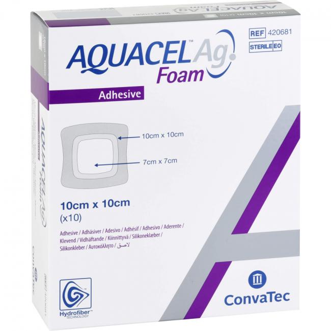 Produktinformationen AQUACEL Ag Foam adhäsiv 10x10 cm Verband, 10 Stück