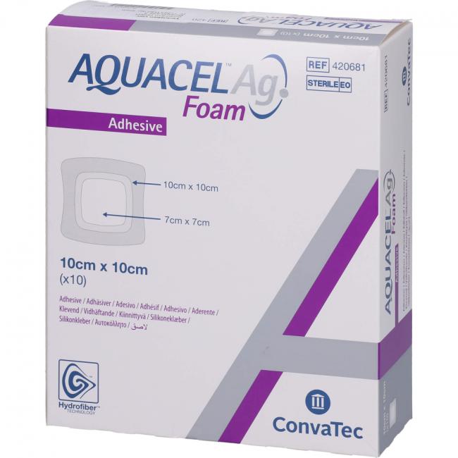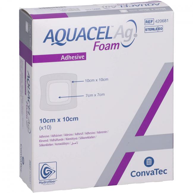 Produktinformationen AQUACEL Ag Foam adhäsiv 10x10 cm Verband, 10 Stück