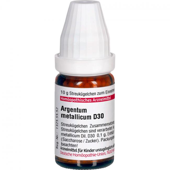 Argentum Metallicum D 30. Anwendungsgebiete: Registriertes homöopathisches Arzneimittel, daher ohne Angabe einer therapeutischen Indikation. Warnhinweis: Dieses Arzneimittel enthält Sucrose (Saccharose / Zucker).