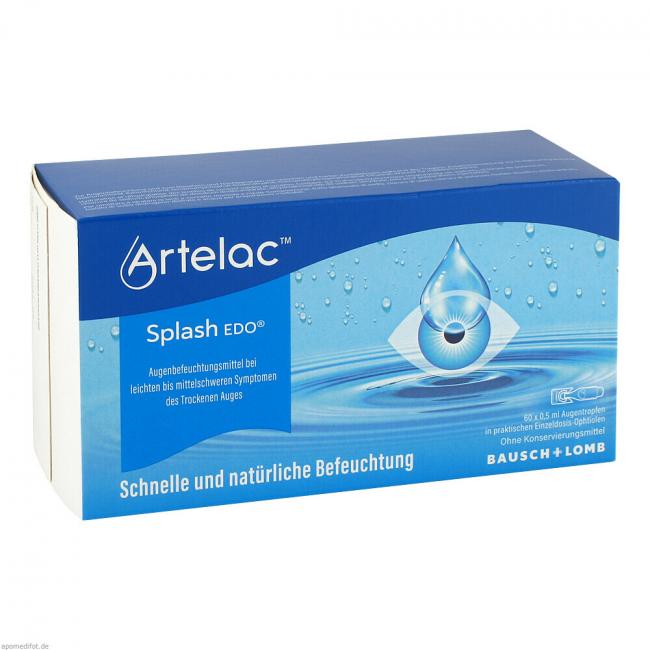 - Artelac Splash EDO eignet sich zum Benetzen und Nachbenetzen von weichen und harten Kontaktlinsen während des Tragens und verbessert damit merklich den Tragekomfort Ihrer Kontaktlinse den ganzen Tag über