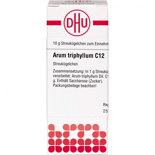 ARUM TRIPHYLLUM C 12 Globuli. Anwendungsgebiete: Anwendungsgebiete: Registriertes homöopathisches Arzneimittel, daher ohne Angabe einer therapeutischen Indikation. Warnhinweis: Dieses Arzneimittel enthält Sucrose (Saccharose / Zucker).