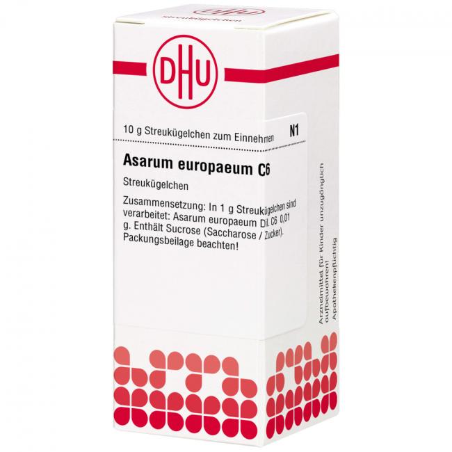 Asarum europaeum C 6. Anwendungsgebiete: Registriertes homöopathisches Arzneimittel, daher ohne Angabe einer therapeutischen Indikation. Warnhinweis: Dieses Arzneimittel enthält Sucrose (Saccharose / Zucker).