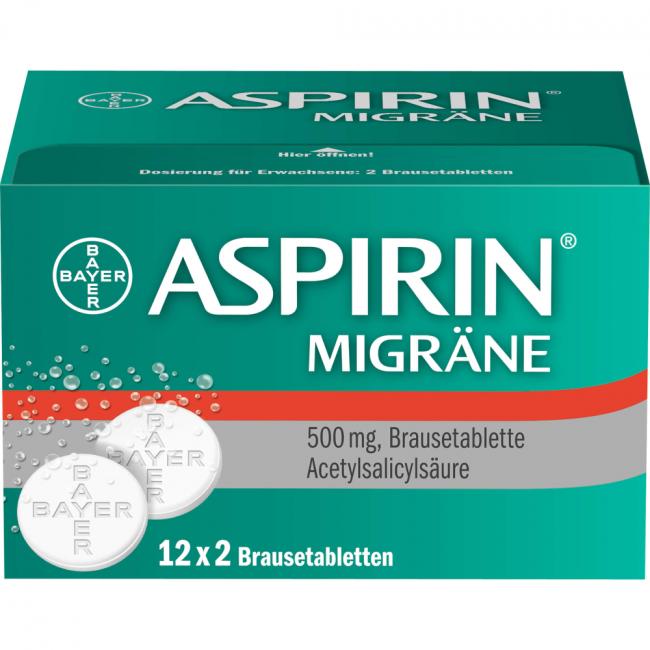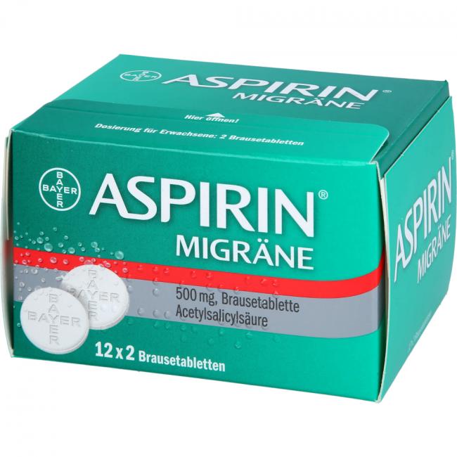 Wirkstoff: Acetylsalicylsäure. Anwendungsgebiete: zur akuten Behandlung der Kopfschmerzphase von Migräneanfällen mit und ohne Aura.