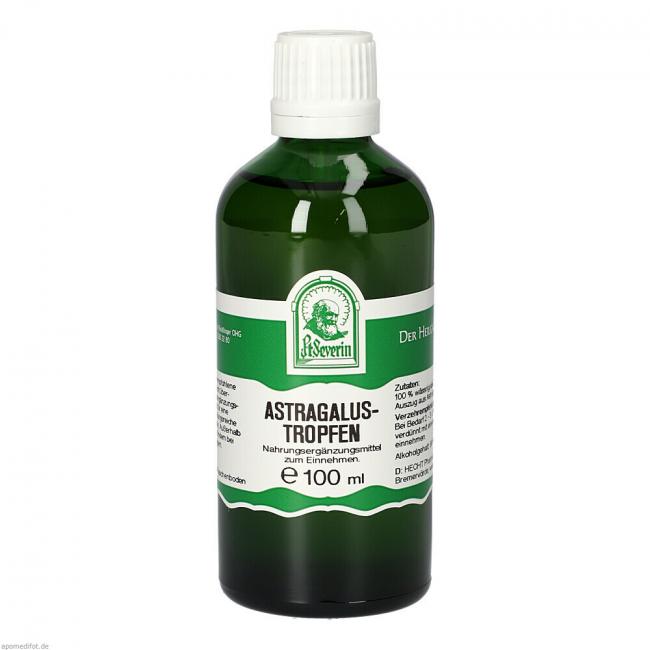 Astragalustropfen enthalten einen hochwertigen wässrig/alkoholischen Auszug aus Astragalus. Der Auszug wird nach Vorgaben des Arzneibuches hergestellt. Alkoholgehalt: 66% Vol. Allergene: keine