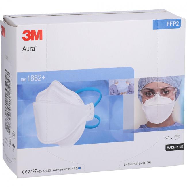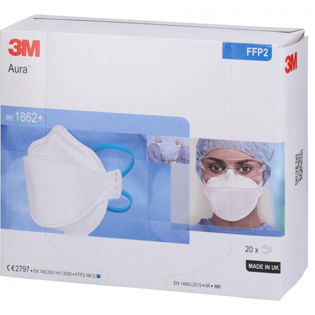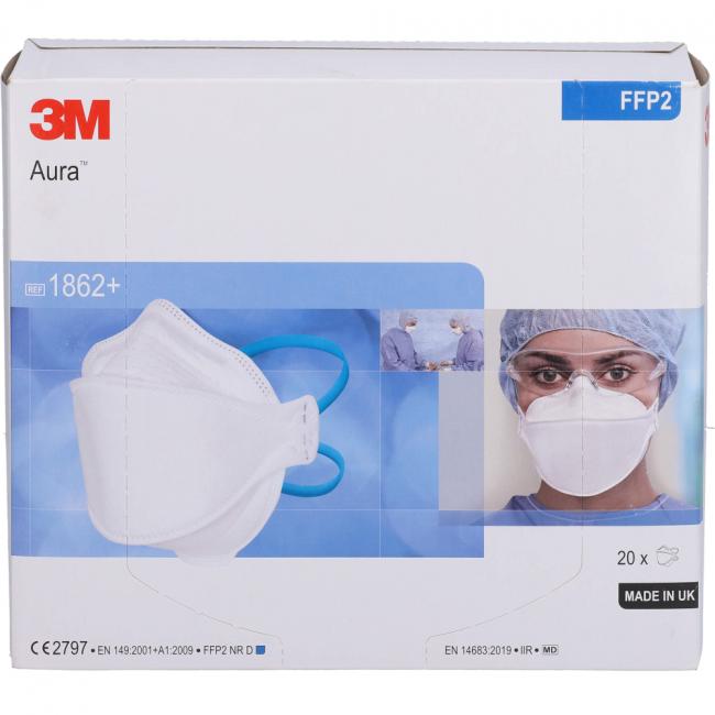 Pflichtangaben ATEMSCHUTZMASKE 3M 1862+ ohne Ventil Aura FFP2, 20 Stück