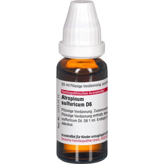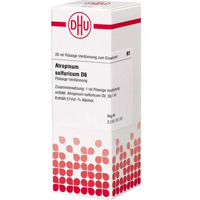 Atropinum Sulfuricum D 6. Anwendungsgebiete: Registriertes homöopathisches Arzneimittel, daher ohne Angabe einer therapeutischen Indikation. Warnhinweis: Enthält 51 Vol.% Alkohol.