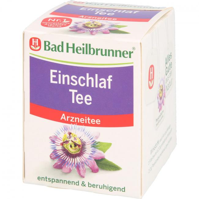 Bad Heilbrunner Einschlaf Tee, Arzneitee. Wirkstoffe: Passionsblumenkraut geschnitten. Anwendungsgebiete: Nervöse Unruhezustände.