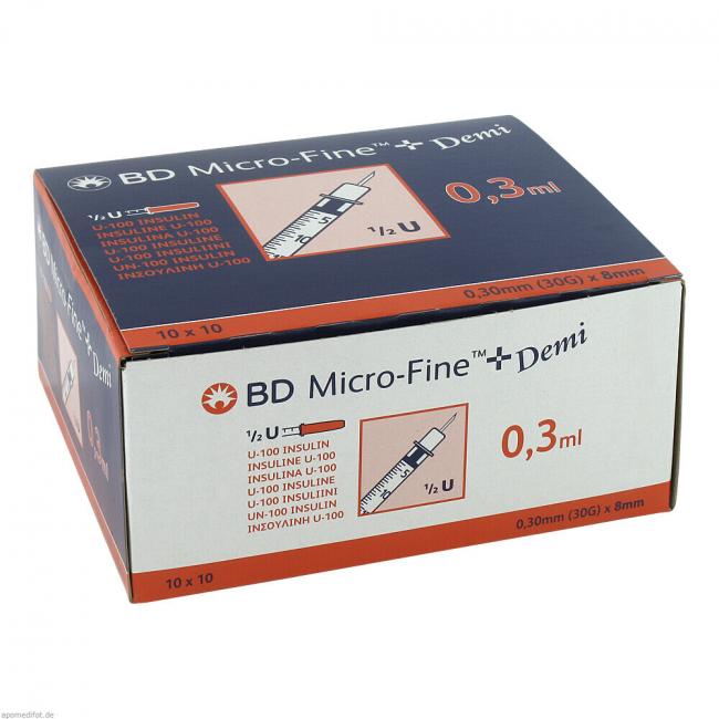 BD MICRO-FINE+ Insulinspr.0,3 ml U100 0,3x8 mm (100 St) Preise im Vergleich - hier günstig kaufen: