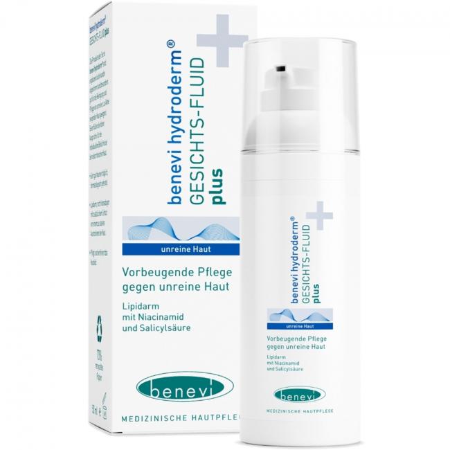 Mitesserlösende, fettarme Pflege bei Pickeln, verstopften Poren und fettiger, unreiner Haut: Das benevi hydroderm Gesichtsfluid plus wurde für Menschen entwickelt, deren Haut zu Unreinheiten, Glanz oder verstopften Poren neigt - auch bei empfindlicher Haut. Im Unterschied zur klassischen Variante enthält das »plus«-Fluid aktiv wirksame Säuren wie Salicyl- und Milchsäure zur milden Entfernung von Hautschüppchen und Mitessern.