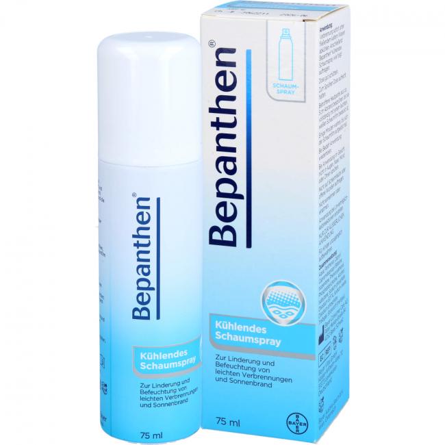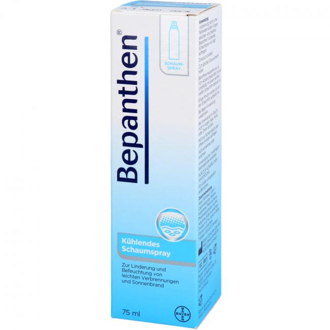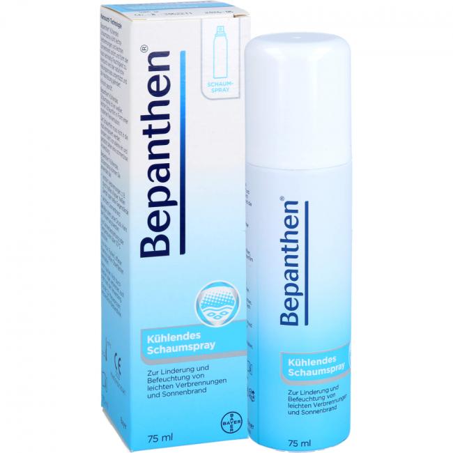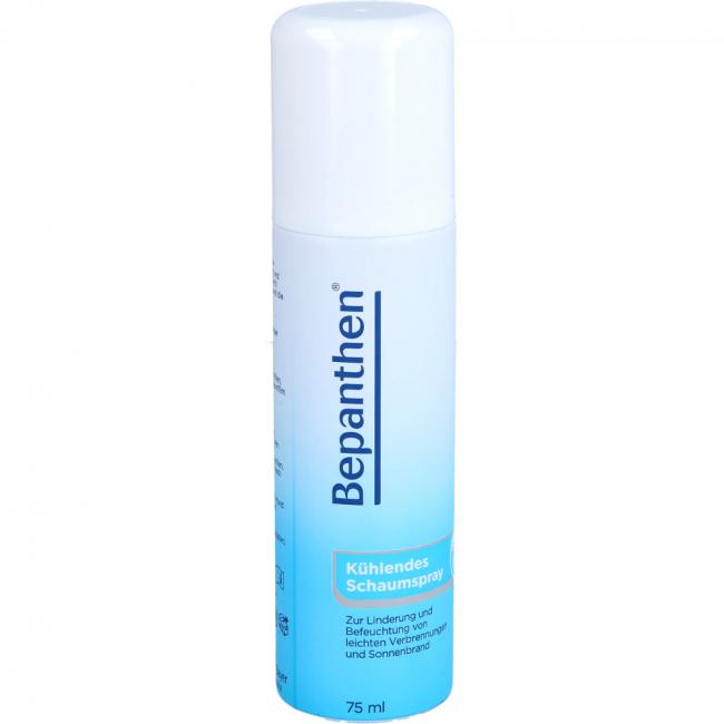 Bepanthen Kühlendes Schaumspray ist ein weißer, leichter Schaumfilm in Form einer modernen Nanoemulsion zum Auftragen auf leichte Verbrennungen und leichten Sonnenbrand. Der Schaumfilm muss nicht in die Haut einmassiert werden, sondern zieht von alleine ein und gestattet daher eine schmerzlose Anwendung.