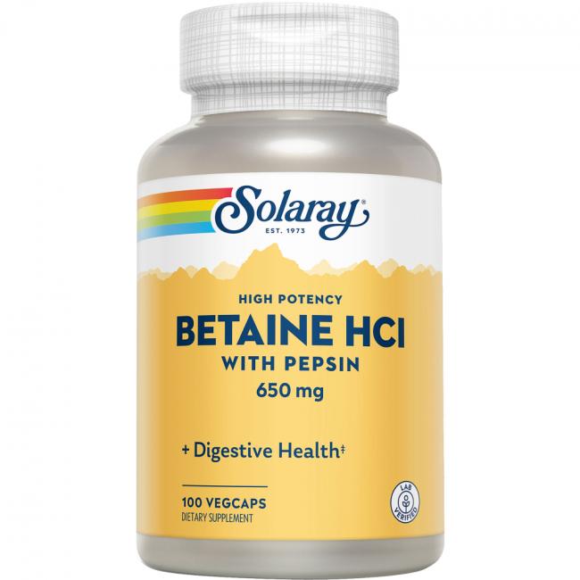 Produktinformationen BETAIN HCL 650 mg+Pepsin Solaray Kapseln, 100 Stück