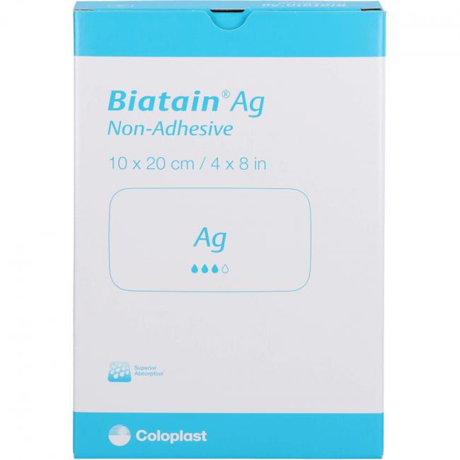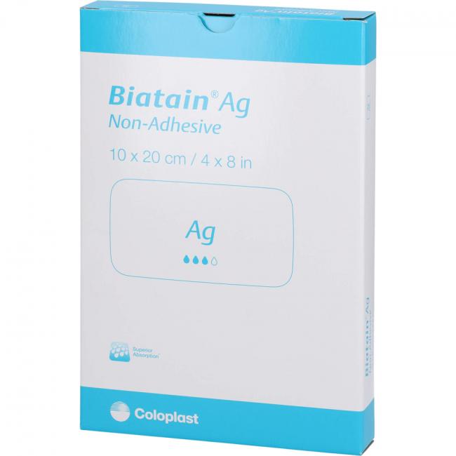 Biatain Ag nicht-haftend ist ein weicher, flexibler, saugfähiger Polyurethan-Schaumverband mit einem patentierten Silberkomplex, der homogen im ganzen Schaumverband verteilt ist.