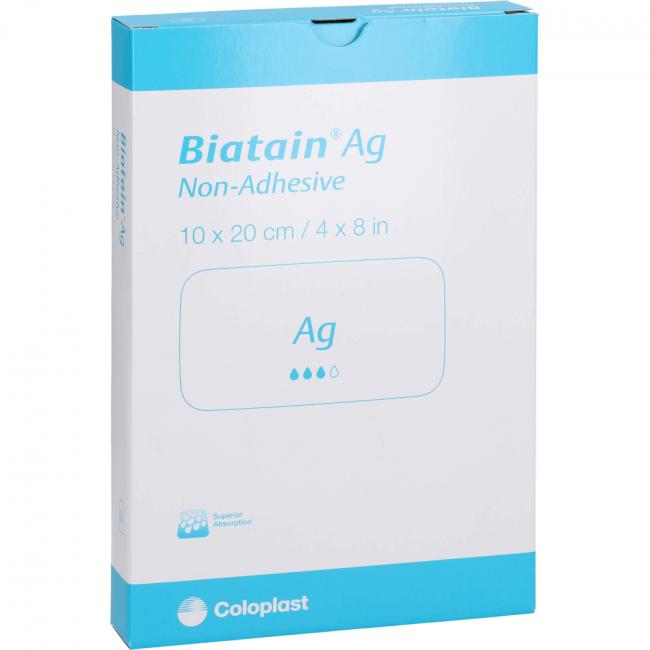 Biatain Ag nicht-haftend kann bei einem breiten Spektrum exsudierender Wunden mit verzögerter Heilung aufgrund von Bakterien oder Wunden mit Infektionsrisiko eingesetzt werden, insbesondere bei Ulcus cruris, Dekubitus, diabetischem Fußsyndrom, Verbrennungen zweiten Grades, Spalthautentnahmestellen, postoperativen Wunden und Hautabschürfungen. Biatain Ag nicht-haftend kann auch unter Kompressionstherapie eingesetzt werden.