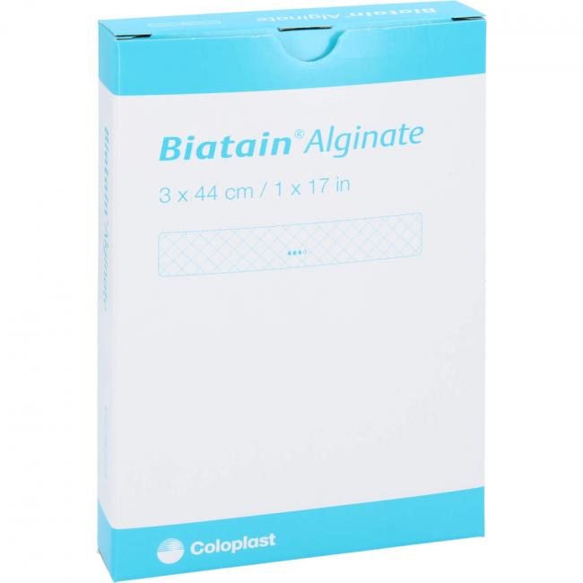 Biatain Alginate ist ein Alginatverband aus 85% Alginat und 15% Carboxymethylcellulose (CMC).