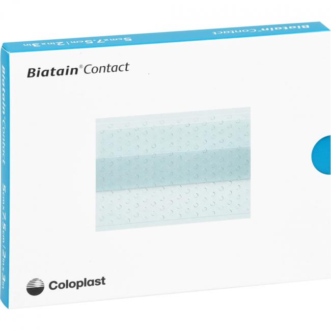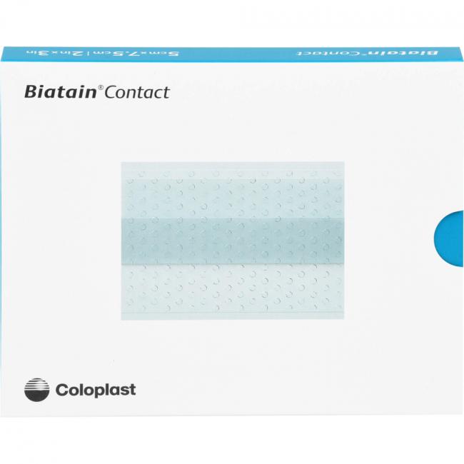 Biatain Contact ist eine Silikonwundkontaktauflage, die für die Behandlung von Wunden und chronischen oder akuten Läsionen mit verschiedenen Exsudationsstärken indiziert ist und zusammen mit einem sekundären absorbierenden Verband appliziert wird. Er kann nach entsprechender Fixation mit einem geeigneten Verband auch als Schutzschicht auf nicht exsudierenden Wunden oder fragiler Haut verwendet werden. Bei spezifischen medizinischen Indikationen kann er unter Kompression verwendet werden.