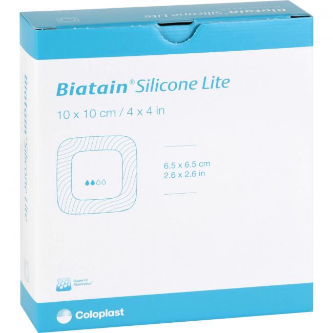 Biatain Silicone Lite ist ein dünner, besonders flexibler und aufnahmefähiger Polyurethan-Schaumverband mit einem semipermeablen, wasser- und bakteriendichten Topfilm und einer weichen Silikonhaftung.
