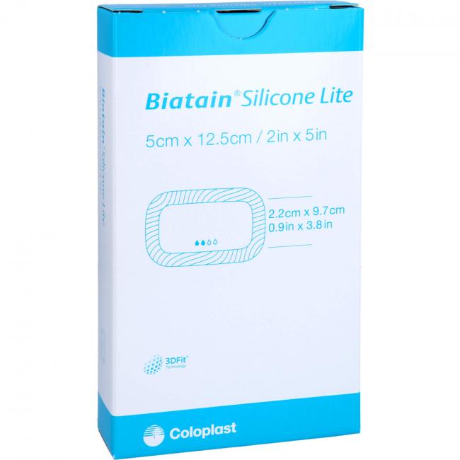Biatain Silicone Lite ist ein dünner, besonders flexibler und aufnahmefähiger Polyurethan-Schaumverband mit einem semipermeablen, wasser- und bakteriendichten Topfilm und einer weichen Silikonhaftung.