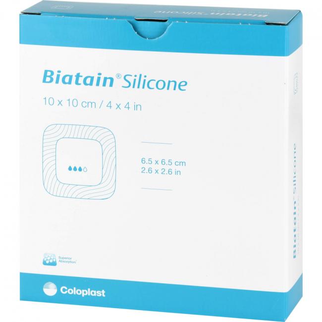 Biatain Silicone kann bei einem breiten Spektrum exsudierender chronischer und akuter Wunden eingesetzt werden, z.B. bei Ulcus cruris, Dekubitus, nicht infektiöses diabetisches Fußsyndrom, Spalthautentnahmestellen, postoperativen und traumatischen Wunden (z.B. Hautabschürfungen). Der Verband kann in Kombination mit Kompressionstherapie angewendet werden und kann bis zu 7 Tage auf der Wunde belassen werden.