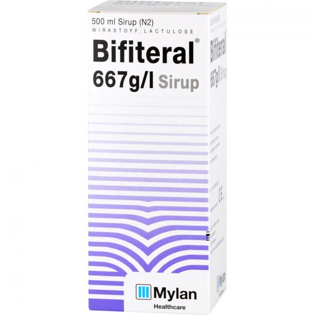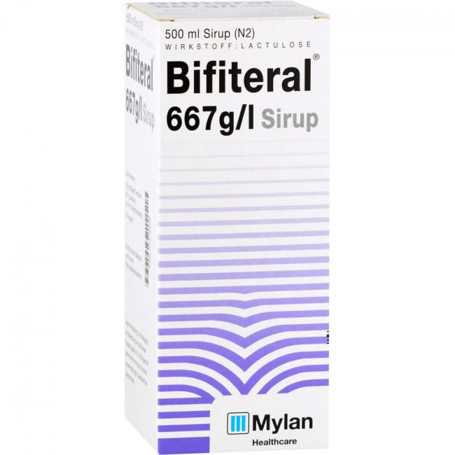 Der Wirkstoff ist: Lactulose. 100 ml Bifiteral enthalten 66,7 g Lactulose [(4-0-ß-D-Galactopyranosyl-D-Fructose)]. Die sonstigen Bestandteile sind: Keine. Hinweis: Enthält herstellungsbedingt geringe Mengen anderer Zucker wie Lactose, Galactose, Epilactose und Fructose.
